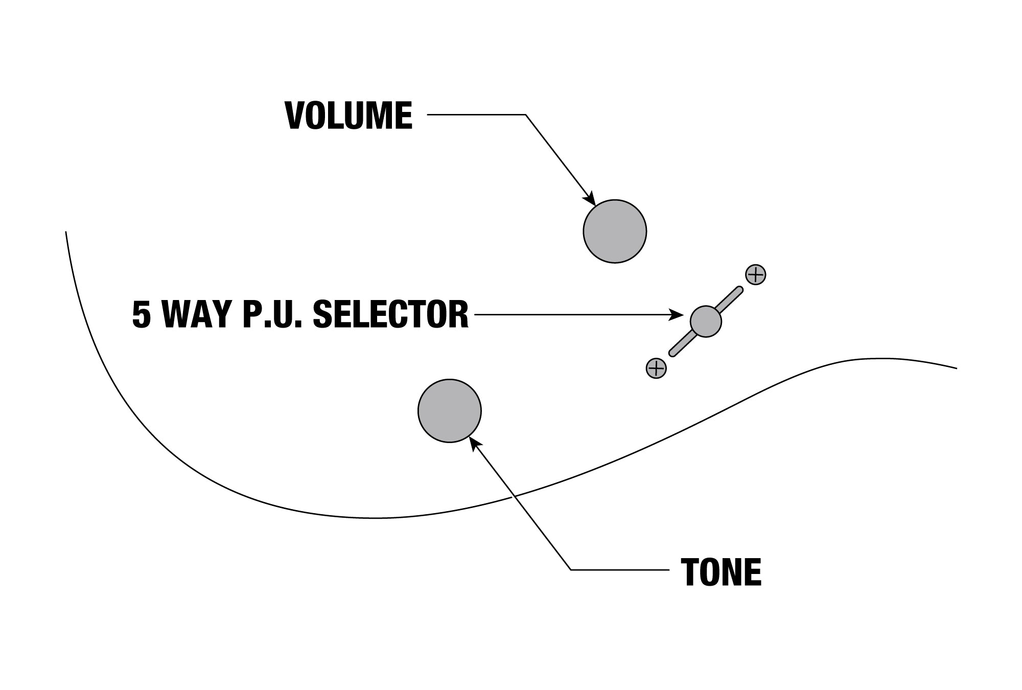 Controlli: Volume, Tono, Selettore pickup 5-Vie